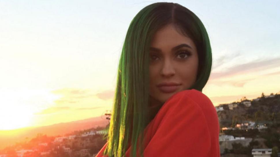 Kylie launched her new product at her family's Dash Boutique in West Hollywood, California on Monday. At the event, the 18-year-old reality star debuted her green hair while baring a bit of cleavage in her all-white outfit. Caitlyn and Kris Jenner were also in attendance and Caitlyn too showcased a new hairstyle -- bangs.