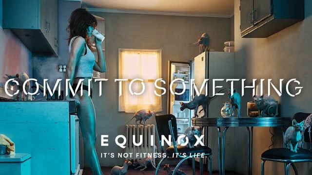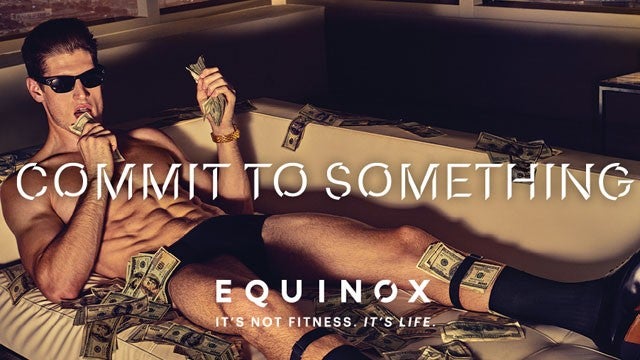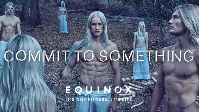 The "Commit to Something" campaign seem to be promoting anything but fitness. Other Equinox ads include a cat lady, an orgy scene, a nearly-naked man lying in money and a super chiseled cult leader. The tagline reads: "It's not fitness. It's life."