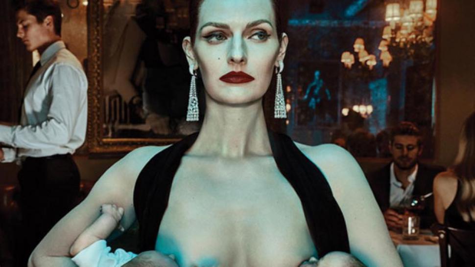 The 31-year-old model, who is the granddaughter of newspaper magnate William Randolph Hearst, doesn't have any children of her own but in the bizarre "Commit To Something" ad campaign for Equinox gyms, she is seen breastfeeding twins.