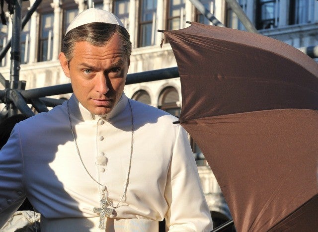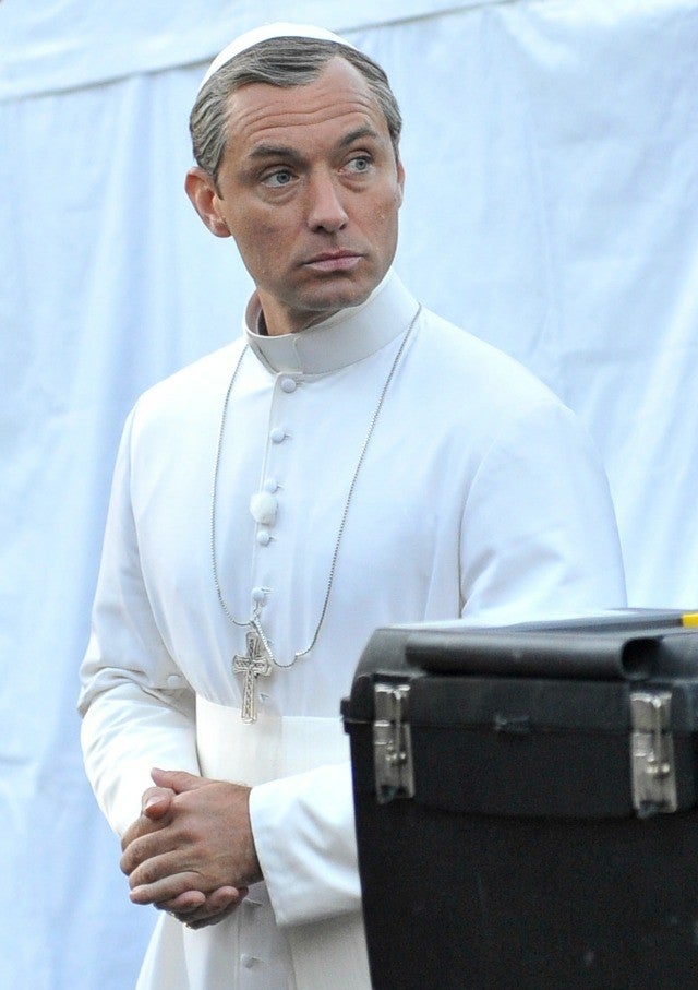 The 43-year-old star has on the holy digs to film the upcoming Sky and HBO series, The Young Pope. Law plays the fictional Pope Pius XIII in the show. Actually, the English actor portrays the first American pope on the program, which just goes to show that an American can't seem to be the pope, even if it's pretend, and on a show about an American being the pope. Drat.