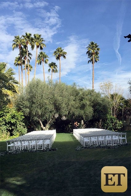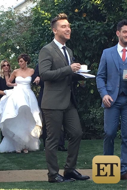 Bass wasn't the only famous face at Sigler and Dykstra's nuptials -- actress Joanna Garcia (the other officiant at Bass' wedding, alongside Sigler) and her husband, Atlanta Braves first baseman-outfielder Nick Swisher, made the trip out to the desert, and some of the girls got ready in Garcia's hotel room. Lea Michele was also in attendance, arriving in Palm Springs around lunchtime.