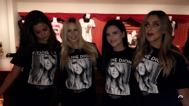 In true fangirl style, Gomez and her friends sported T-shirts emblazoned with Dion's face.