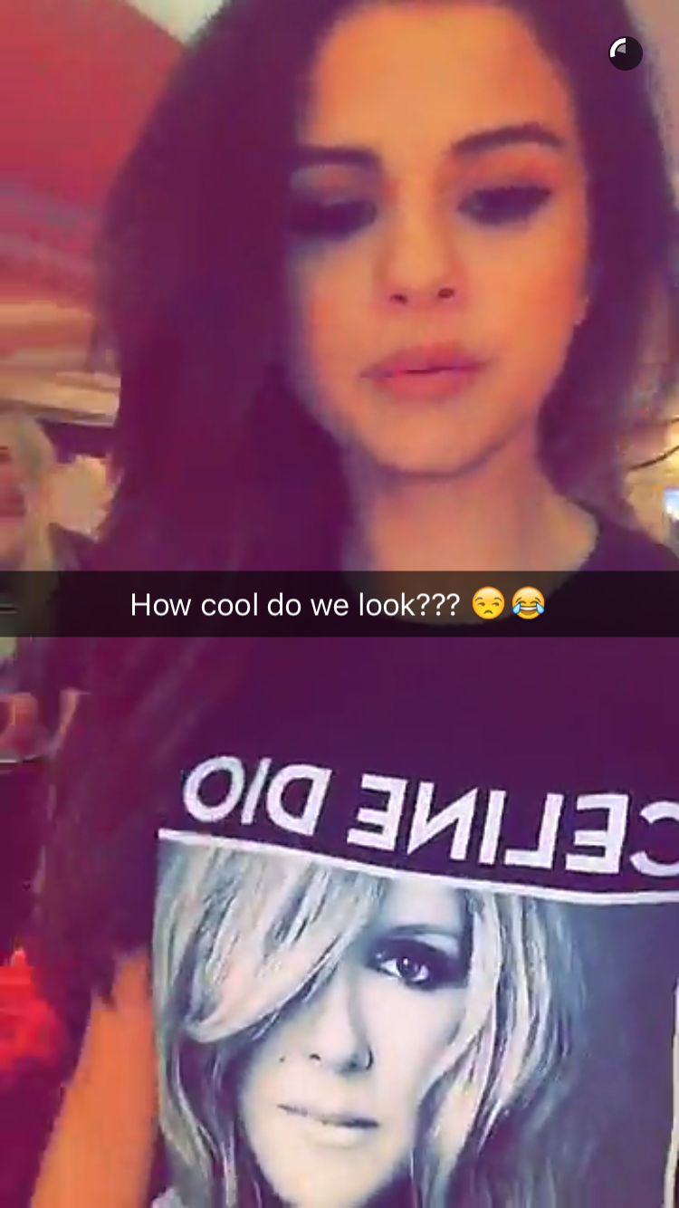The "Good For You" singer happily documented the evening on Snapchat, where she even appeared teary-eyed and emotional during Dion's performance.