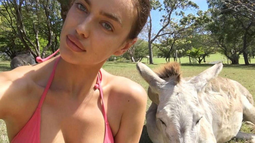 Irina Shayk's supermodel looks almost get overshadowed by a donkey in her recent selfies.