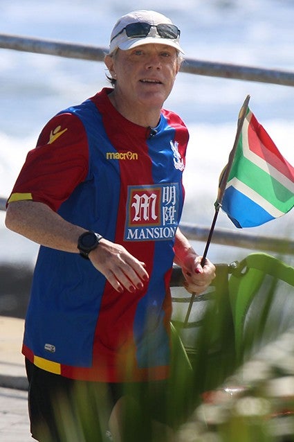 The British actor ran 707 miles in South Africa to raise money for Sports Belief.
