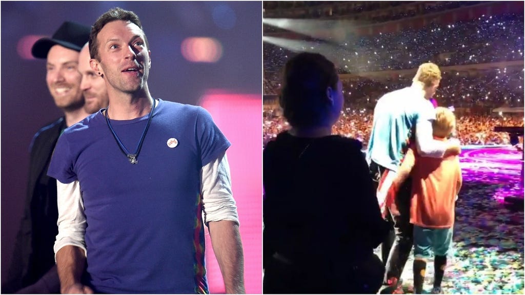 Gwyneth Paltrow shared an incredibly sweet video on Instagram of her son being brought on stage in Peru by his Coldplay rocker dad, Chris Martin, much to the delight of thousands of screaming fans.
