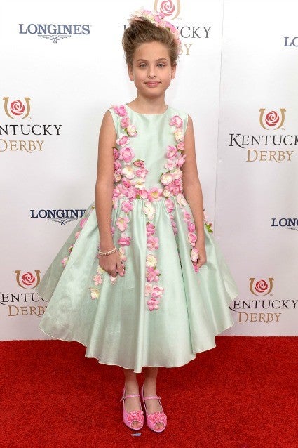 The 9-year-old budding model joined her father, Larry Birkhead, at the Kentucky Derby on Saturday. She displayed her mother's charm on the red carpet, where she posed in a mint green dress and headband adorned with pink flowers designed by Lesy Boutique.