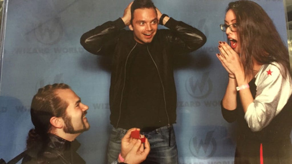 Captain America: The Winter Soldier star Sebastian Stan got the surprise of a lifetime when a fan turned a photo-op into a wedding proposal!