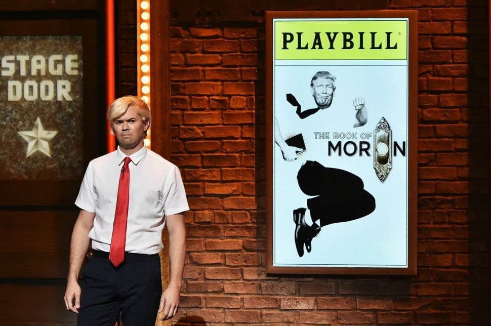Rannells, with a nod to his breakthrough role in the hit musical,Book of Mormon, took on Trump in Book of Moron.
