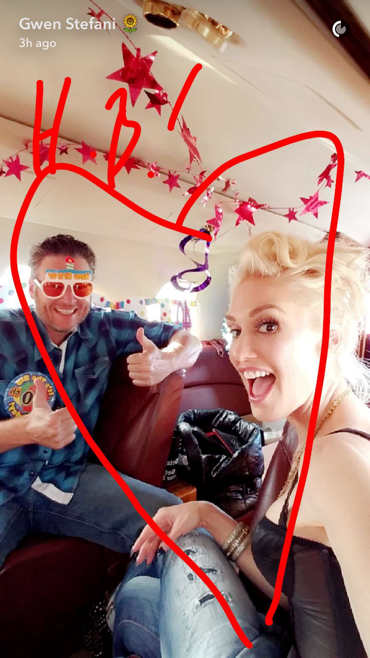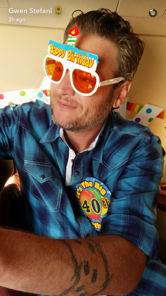 Gwen Stefani helped Shelton celebrate his birthday in a low-key but festive way as they traveled with his band and crew to Grand Junction, Colorado, for the Country Jam 2016 festival. The "Misery" singer captured their entire journey via -- no surprise here! -- Snapchat.