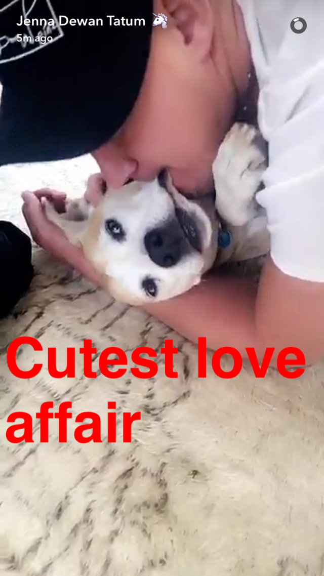 In the absolutely adorable video, the 36-year-old actor can be seen petting and snuggling with Lulu as the dog licks his face. He then playfully bites her mouth, which should be gross, but somehow it's perfectly precious in a way that only Channing can pull off.
