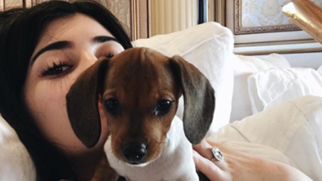 Ernie, Jenner's dachshund, even made an appearance, and the lip kit maven joked that the excited pup "has a girlfriend now."