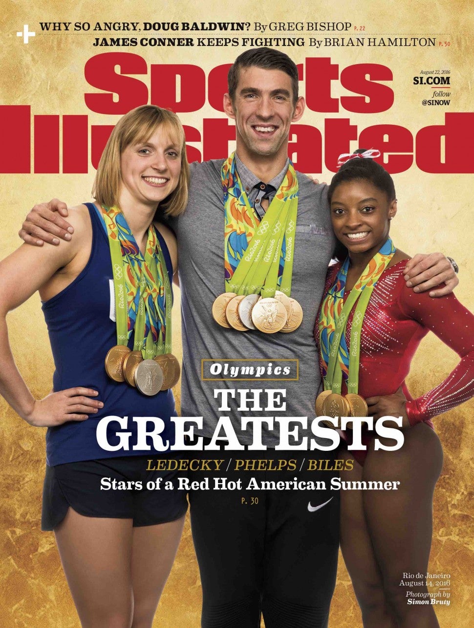 America's top Olympians took time out of their busy schedules to pose for the cover of Sports Illustrated, which hits newsstands on Aug. 17. All three athletes gathered on Sunday night in Rio, with medals in hand, to be shot by famed photographer Simon Bruty.