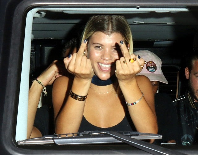 However, Bieber did not attend Richie's birthday dinner with friends at Koi restaurant. Wearing a black crop top, colorful Adidas pants, and a choker, Richie playfully acknowledged paparazzi, flipping them the bird with a huge smile on her face.