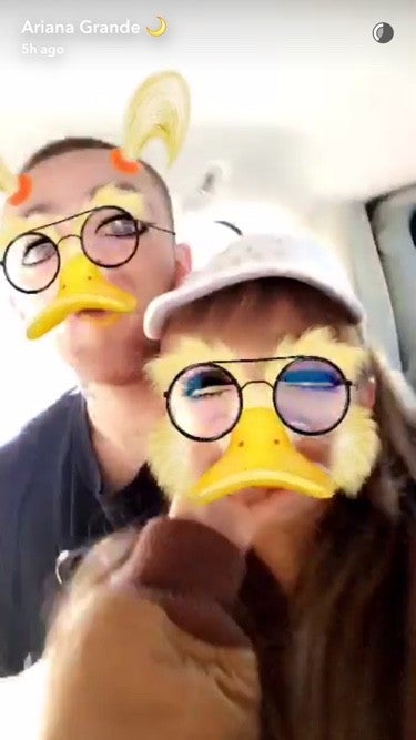 Days after getting inked together at Shamrock Social Club in Los Angeles, Ariana Grande and Mac Miller have taken their relationship to Snapchat.