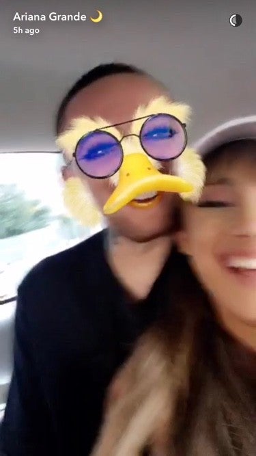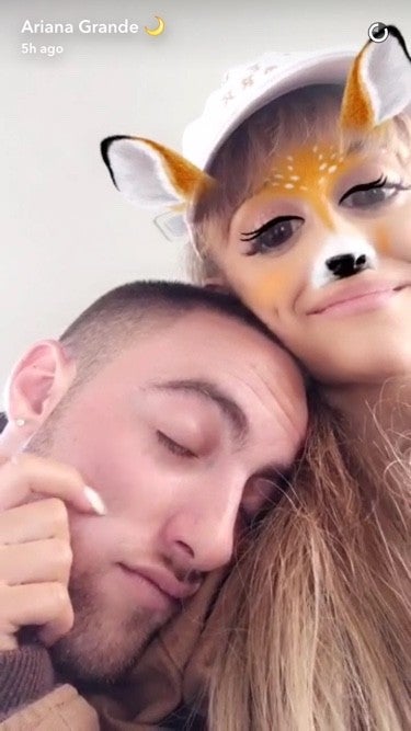 Grande and Miller, who collaborated in 2013 on "The Way," cuddled up in several snaps posted to the "Dangerous Woman" singer's Snapchat on Saturday.