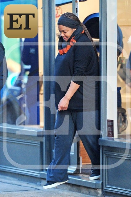 ET was the first to report back in May that the 50-year-old singer is pregnant with her first child with husband Wissam Al Mana, and only ET has these exclusive new photos taken Tuesday afternoon, when she was spotted out and about in London with a visible baby bump. Jackson, who is rarely photographed in public, was seen leaving the baby furniture store Back In Action wearing sneakers, dark sweatpants, a black sweater and a matching scarf and headband.