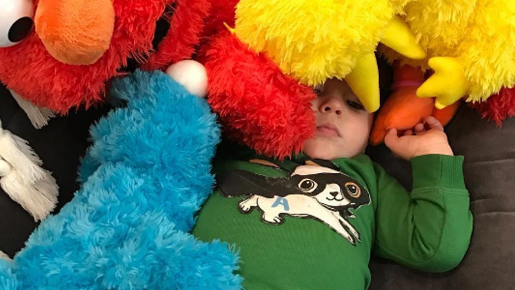 The fun didn't end at the park either! After the visit, Underwood, 33, shared the cutest snap of her baby boy lying under Cookie Monster, Elmo, and Big Bird stuffed animals.
