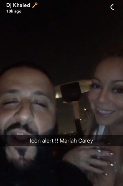 After calling it quits from her billionaire fiance, James Packer, the 46-year-old singer hung out with the fun-loving Khaled, who, of course, posted their night out on Snapchat. "I'm with the icon -- the icon Mariah Carey," Khaled exclaimed. Carey responded, "You don't love me."