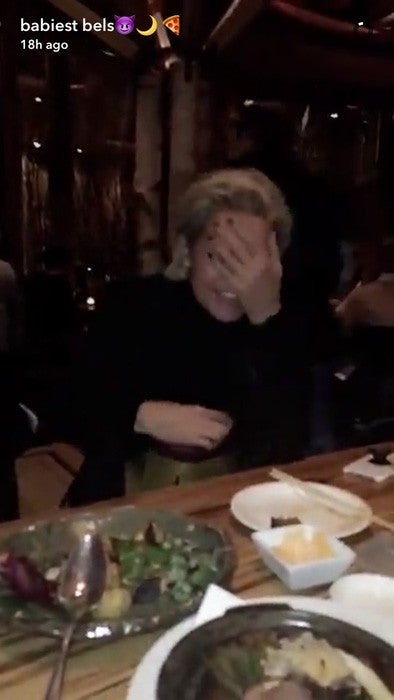The trio were all smiles as they headed to dinner at Nobu, where Bella shared a snap of her mom smiling as she opened a birthday present.