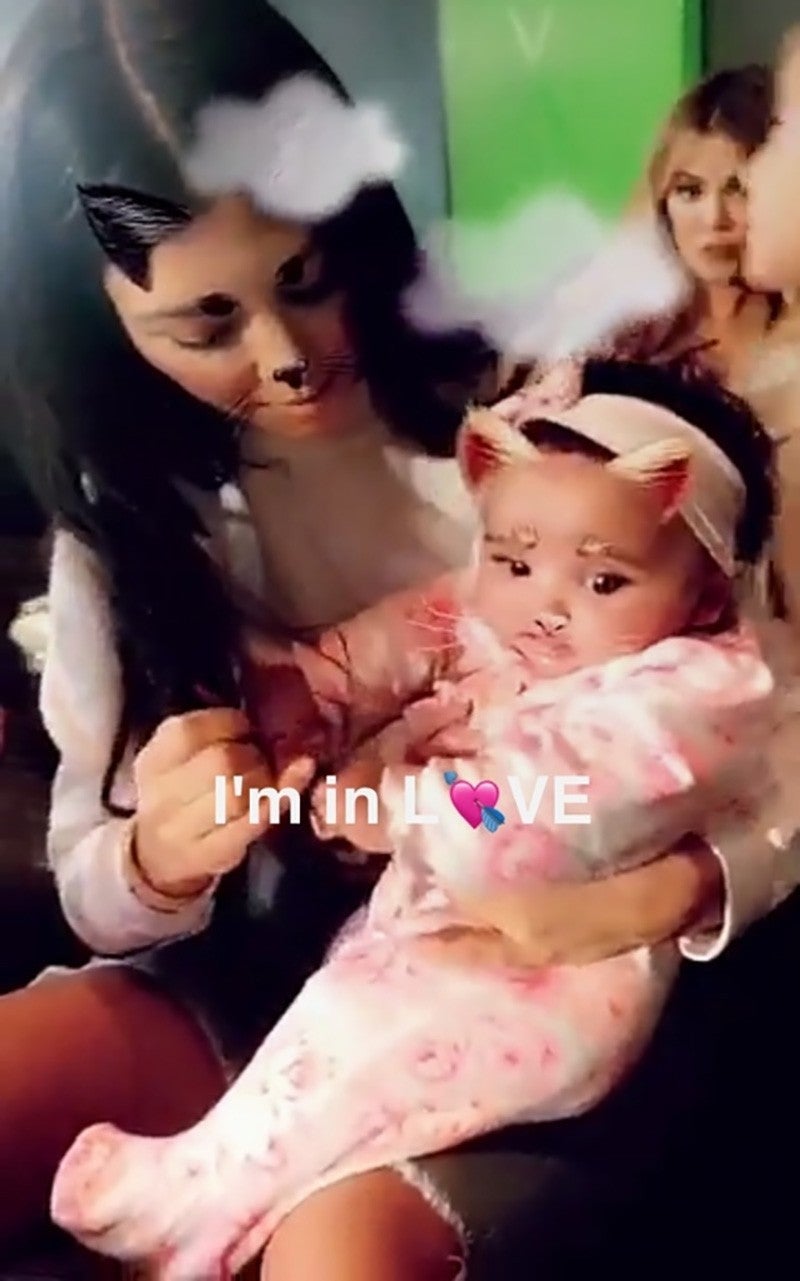 Of course, 37-year-old Kourtney got in on the action, carrying Dream and writing, "I'm in love."