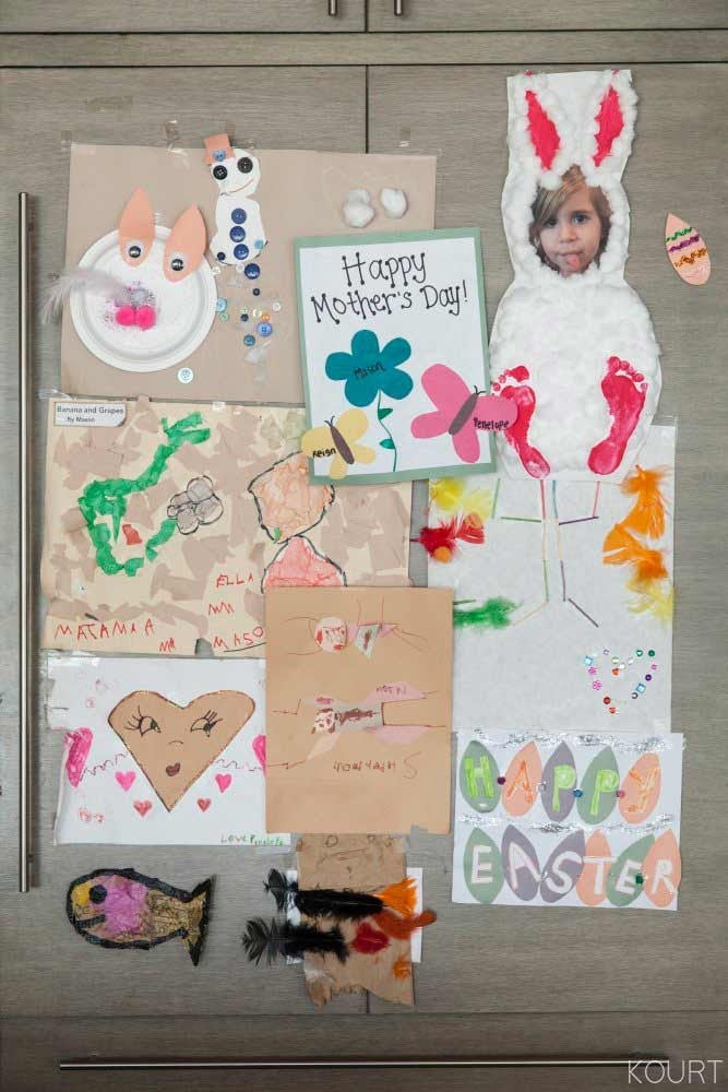 "I love art and décor that reminds me of my childhood, friends or family," the 36-year-old reality star wrote, revealing drawings her three kids -- 7-year-old Mason, 4-year-old Penelope, and 2-year-old Reign -- have made her, as well as various items which belonged to Kourtney's late father, Robert Kardashian.