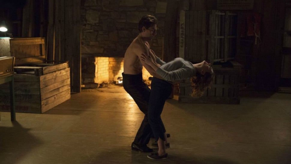 The upcoming remake it doing its best to stay true to the original 1987 movie, judging by the pics, as Breslin's Baby and Colt Prattes' Johnny Castle practice their dance by the lake -- but then take their steamy romance to the fireplace.