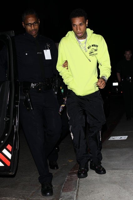 Tyga was seen being hauled away in handcuffs by police after leaving Hollywood's Avenue Nightclub on Tuesday night.