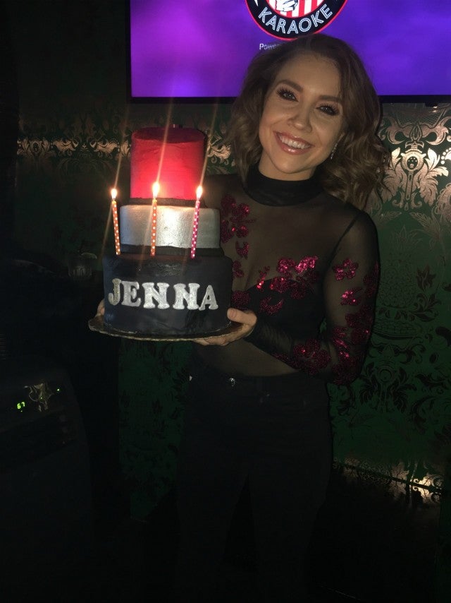 Dancing With the Stars' Jenna Johnson celebrated her 23rd birthday with a karaoke party at Blind Dragon in Los Angeles. Fellow dancers Sharna Burgess, Keo Motsepe, Artem Chigvintsev and more sang and danced all night and presented the birthday girl with a lipstick ice cream cake from Cold Stone Creamery.