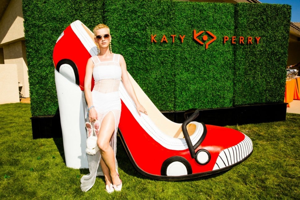 Earlier in the day, Katy Perry hosted an Easter Day "Recovery" Brunch, produced by John Terzian's The h.wood Group, at a private estate during the Coachella Music Festival in Thermal, California. The colorful daytime event featured an exclusive pop-up debut of the Katy Perry Footwear collection, and guests re-fueled with vitamin elixirs, oxygen bars and reflexology massages. The fun activities also included a festive Easter egg hunt by Cover Girl, and beats spun by Mia Moretti, Balthazar Getty and Bobby French.
