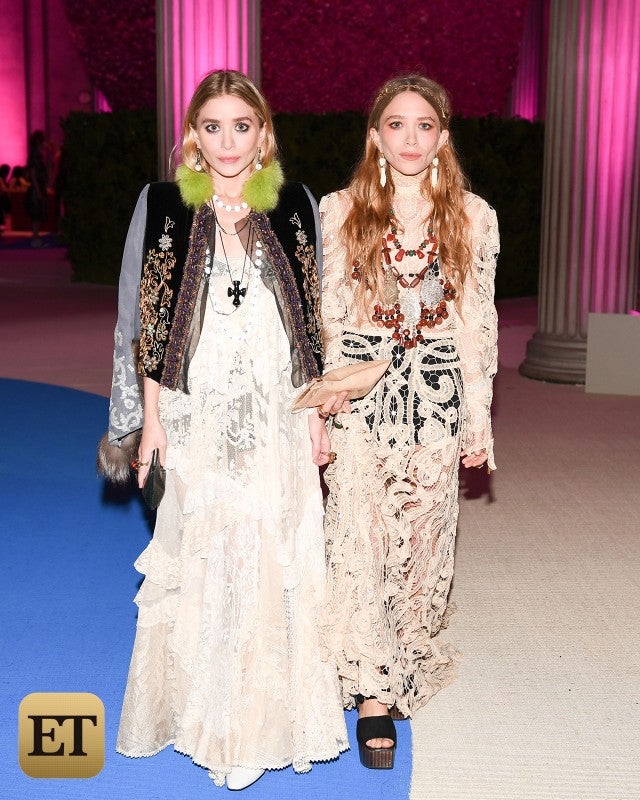 And though they didn't party on the dance floor, designers Mary-Kate and Ashley Olsen certainly turned heads when they ditched their signature black for two white ensembles. The Row designers kept their signature straight faces, but did get adventurous with their intricate gowns.
