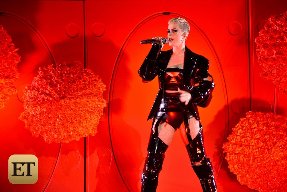 It could be because they were listening to the vocal stylings of Katy Perry, who changed out of her red avant-garde Maison Margiela Couture gown and into a black latex ensemble for her performance. Perry rocked her new platinum buzz cut as she sang for the celebrity crowd.