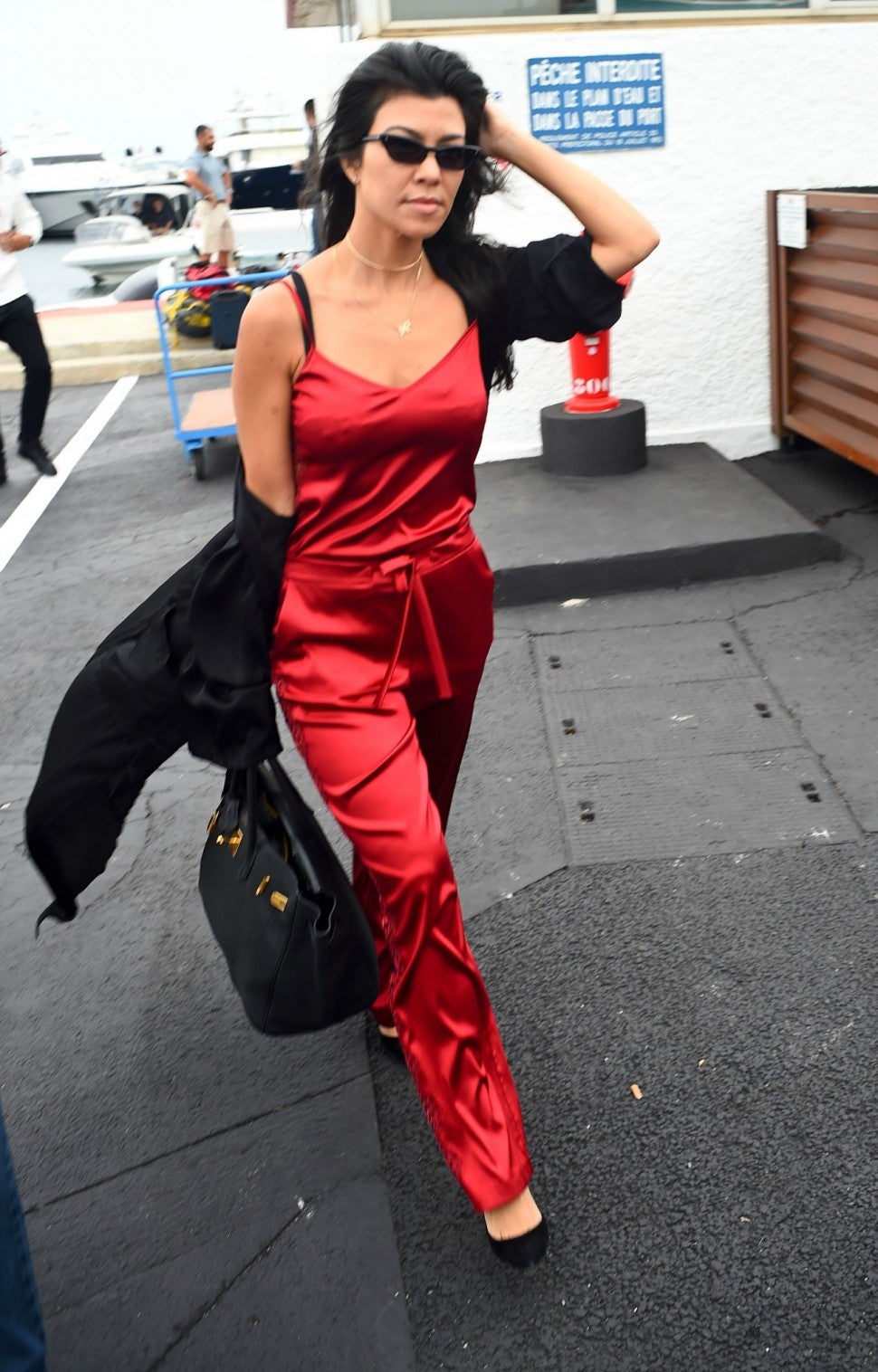Kardashian, meanwhile, made one last fashion statement in a red PJ set by I.D. SARRIERI and cat eye sunnies.