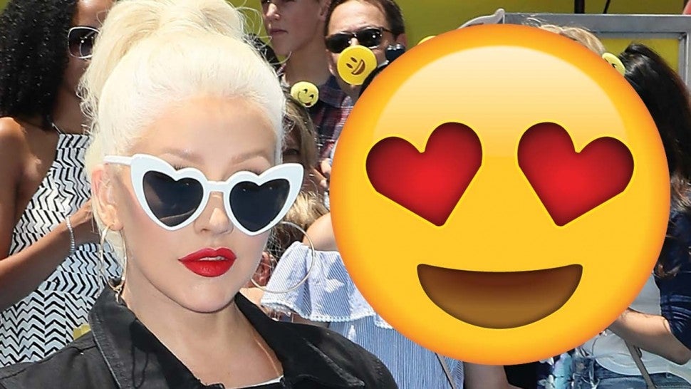 Rutler wore a black shirt with two simple red heart emojis, while Aguilera donned a pair of sunglasses that made her a walking reference to the "Heart Eyes" emoji.