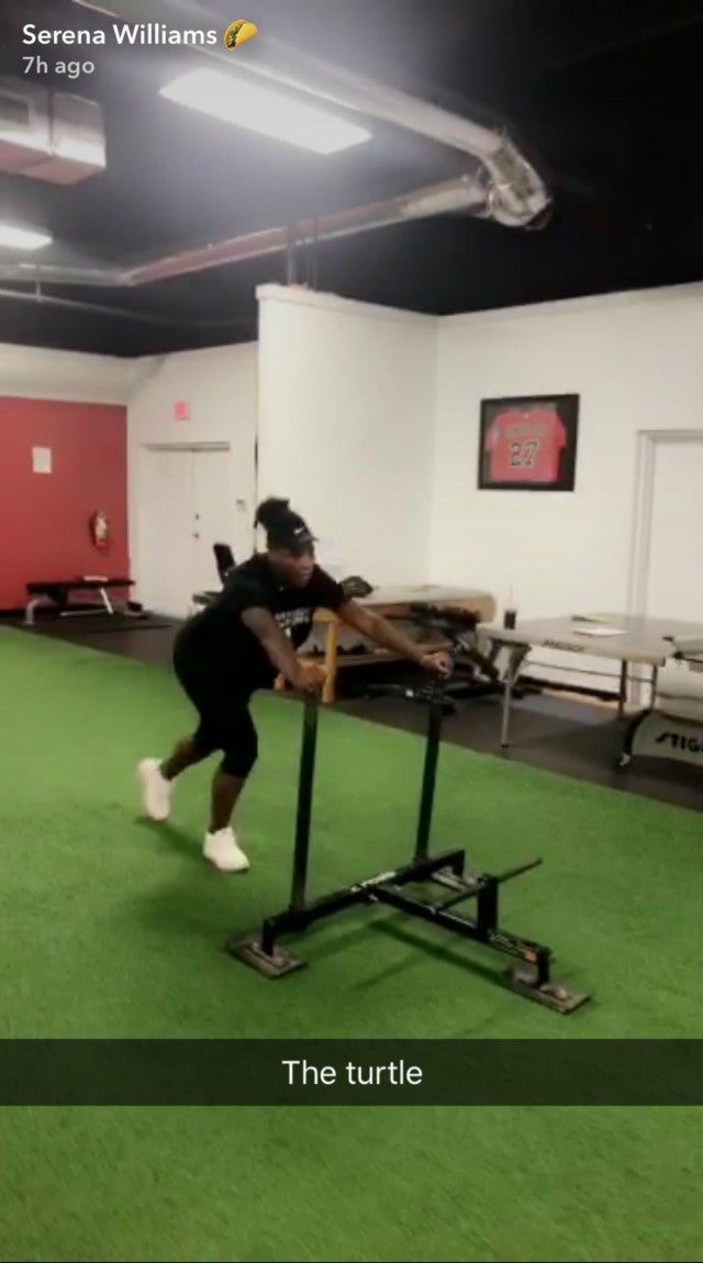 The tennis pro proved nothing holds her back -- even pregnancy -- in fierce workout videos she posted on Snapchat on Wednesday.