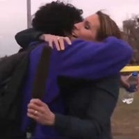 The reporter had been covering the frightening incident, and was getting information on the scene from her son.