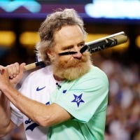 The 'Breaking Bad' star was hit by fellow actor Anthony Ramos in the batting cages at Dodger Stadium.