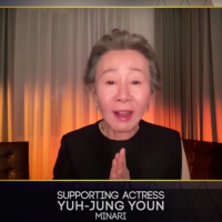The 73-year-old Korean actress took home the Best Supporting Actress trophy.