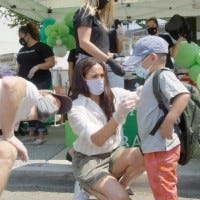 The Duke and Duchess of Sussex wore face masks for the outdoor event in Los Angeles.