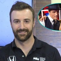 The IndyCar driver opened up to ET about his former 'DWTS' partner, Sharna Burgess, just days ahead of competiting at the Grand Prix of Long Beach.