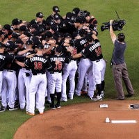 The Marlins and the visiting New York Mets paid their respects to the late ace with a ceremony and embrace ahead of the game.