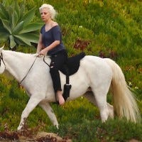 The Oscar nominee hit the trails with her new stallion, Lady Arabella.