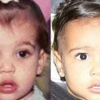 It's hard to tell Kim Kardashian and her baby apart in this side-by-side shot.
