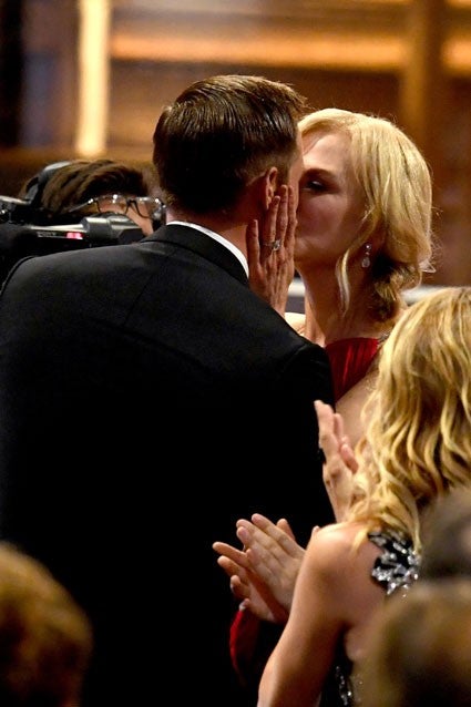 Kidman then defended her Emmys moment with the 41-year-old actor, referencing the intense scenes they shot together for the HBO miniseries. “I did kiss [Skarsgard], but you gotta understand, I did everything with Alex,” she explained. “I’ve got an amazing, supportive husband who I love more than anything in the world, and I gave Alex a congratulatory kiss, and he’s like a mannequin.”