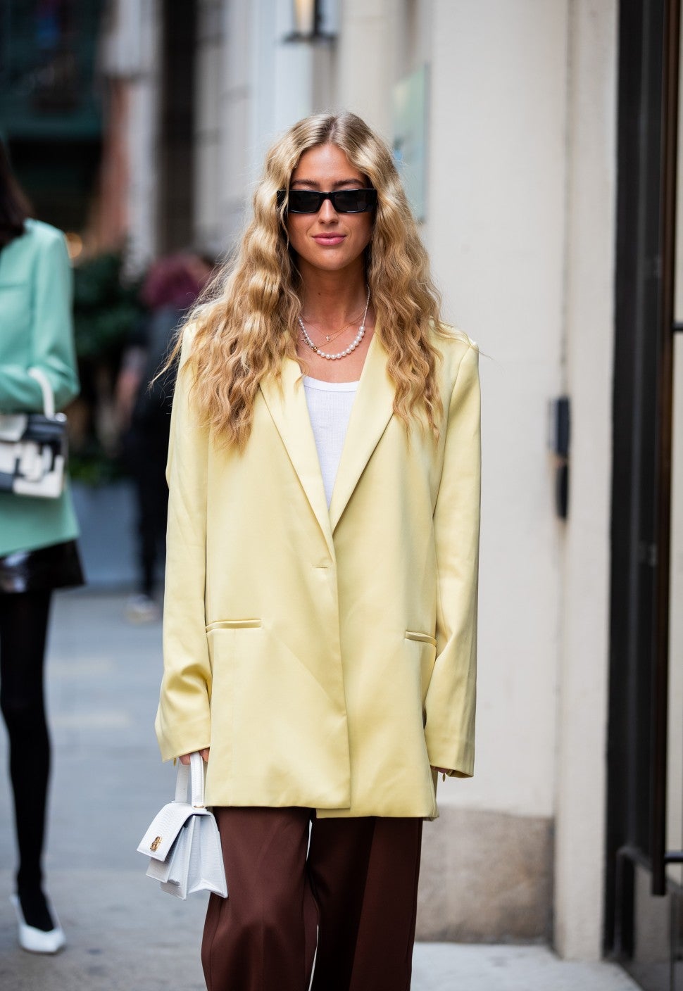 Boxy, roomy blazers were the choice toppers, styled with everything from trousers to dresses.