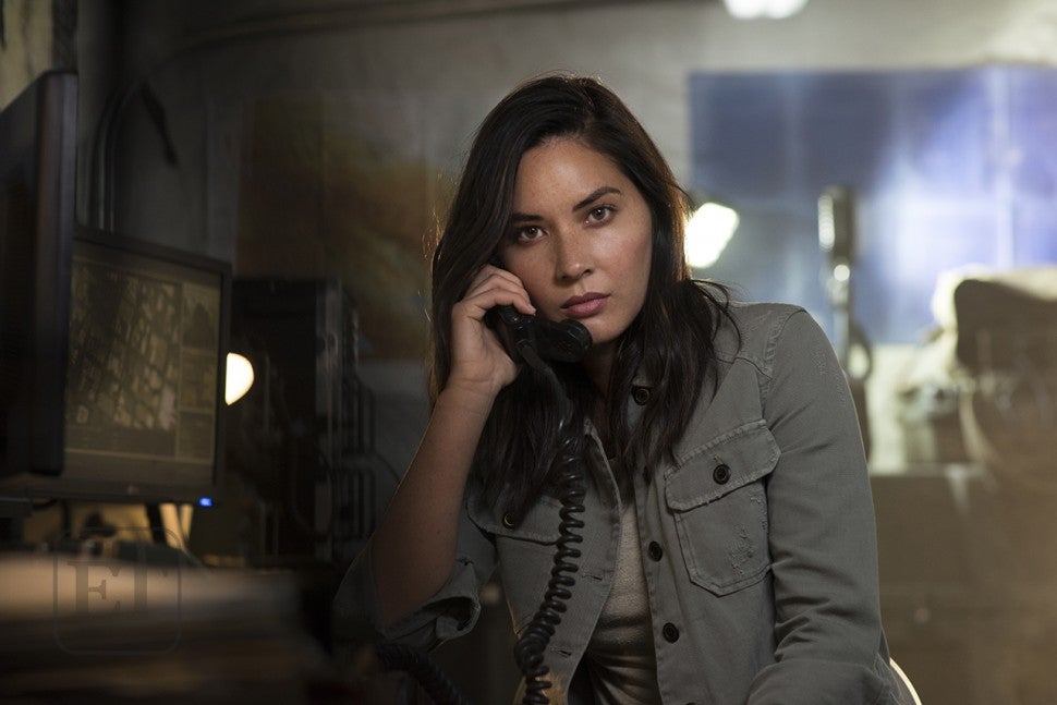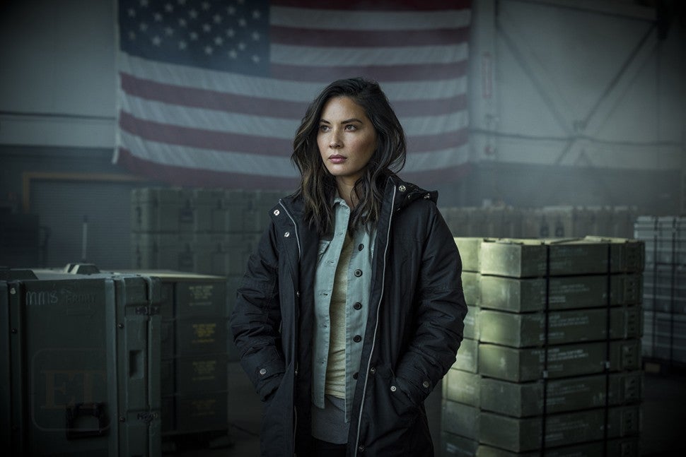 In the exclusive season two cast photo, Munn takes center stage as she and her co-stars have their game faces on as they get combat ready.