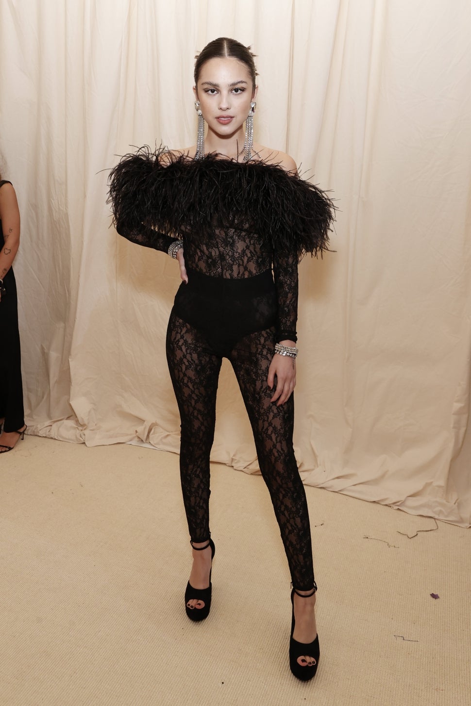 Rodrigo arrived at the Metropolitan Museum of Art wearing a bodysuit by Saint Laurent. As the High School Musical: The Musical: The Series star told Vogue, she wanted to go with a punk vibe to honor her love of American punk music.