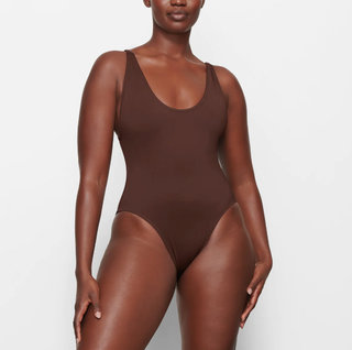 This suit is the definition of "business in the front, party in the back" with a simple neckline and low back with cheeky coverage.