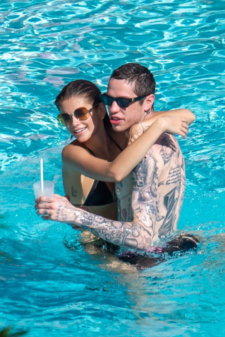 The 18-year-old model and the Saturday Night Live comedian were spotted packing on the PDA while poolside at a hotel in Miami, Florida, on Saturday. The two couldn't get enough of one another as they soaked up the sun and had a make out session before jumping in the pool where Gerber wrapped herself around Davidson, 26.