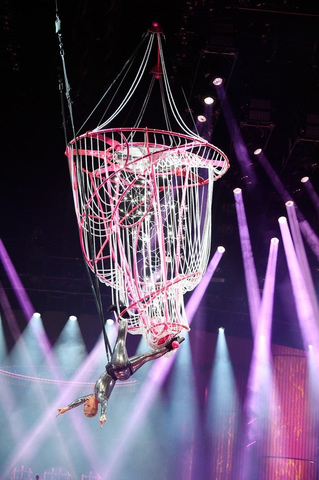The 38-year-old singer definitely has both her kids and music on the brain. On Thursday, she also kicked off her Beautiful Trauma World Tour in Pheonix, Arizona, and, as we've come to expect from Pink, acrobatics were included.